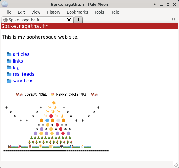 I really like personal homepages and have quite a list of them bookmarked. I'll post one every week unless I fall behind this schedule. 😉 So here's Cool Personal Homepages #CPH Vol. 55: "Spike.nagatha.fr"