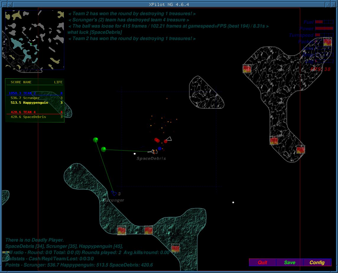 XPilot - "is a multiplayer video game. It is open source and runs on many platforms. Although its 2D graphics have improved over time, they still resemble the style of Thrust." - Wikipedia