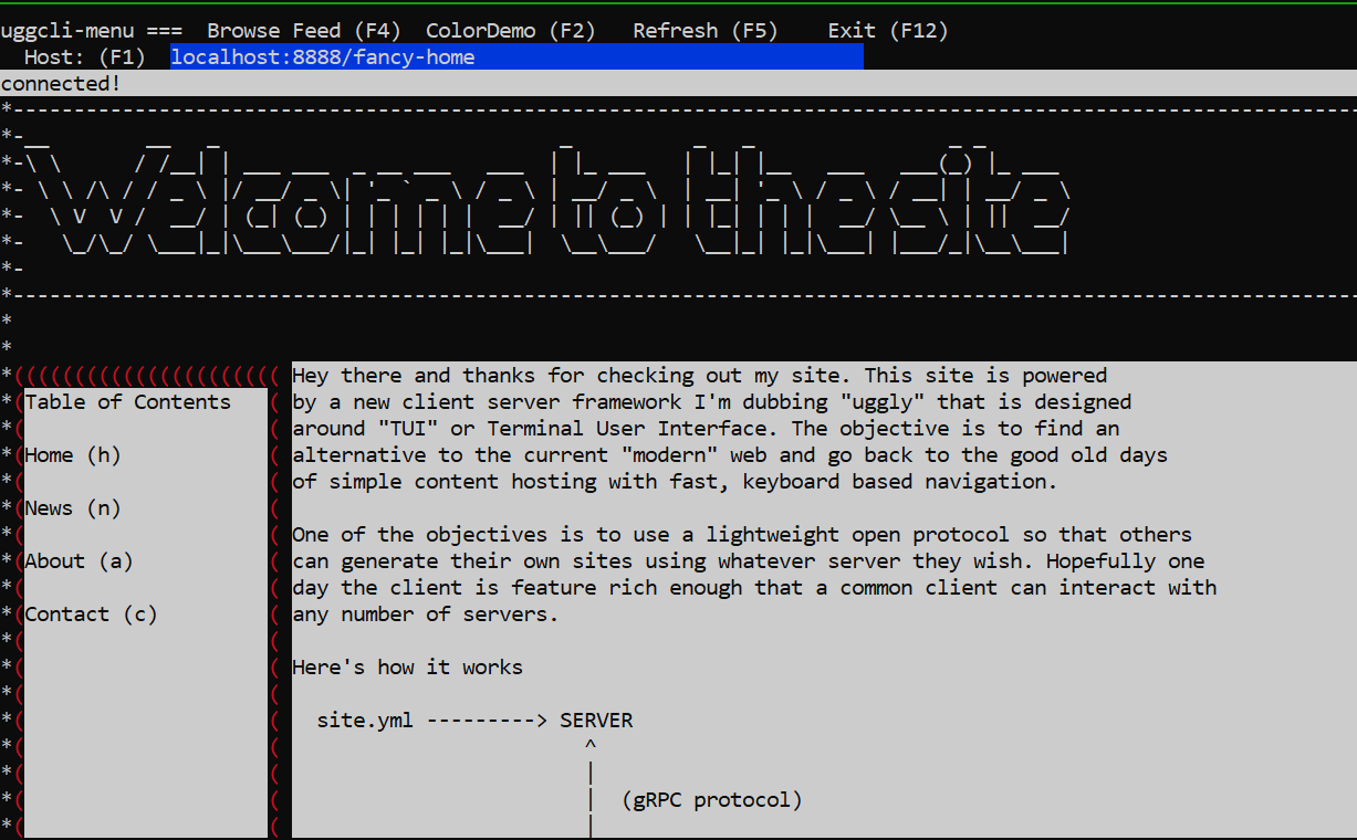 uggly - "Protocol for TUIOW (terminal user interface over the wire)" - R. Endicott